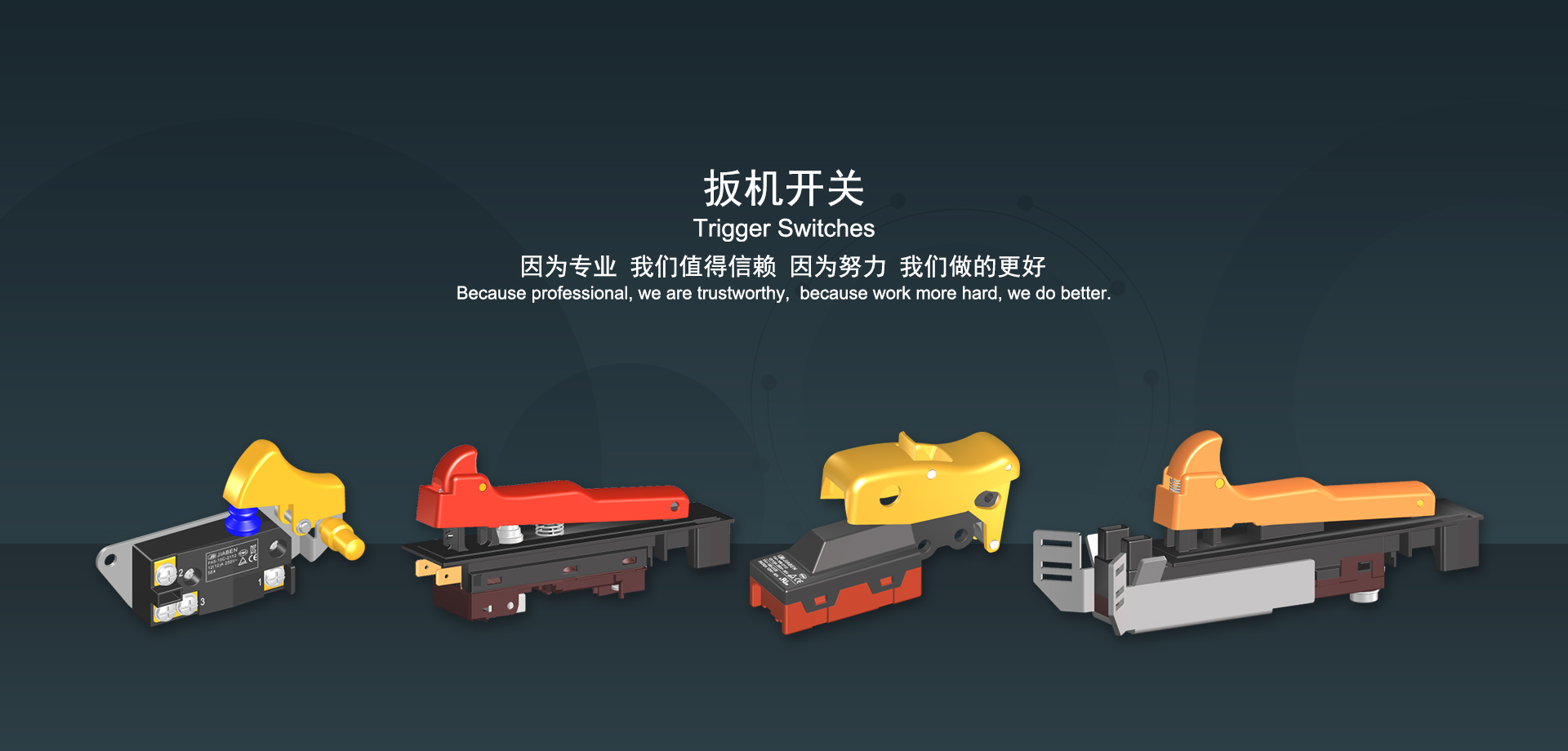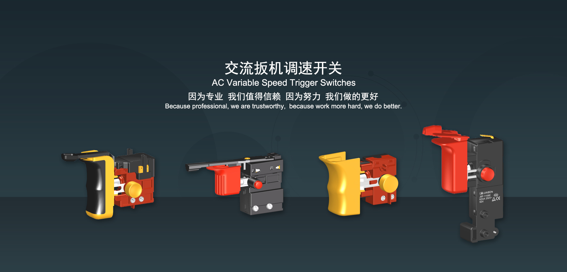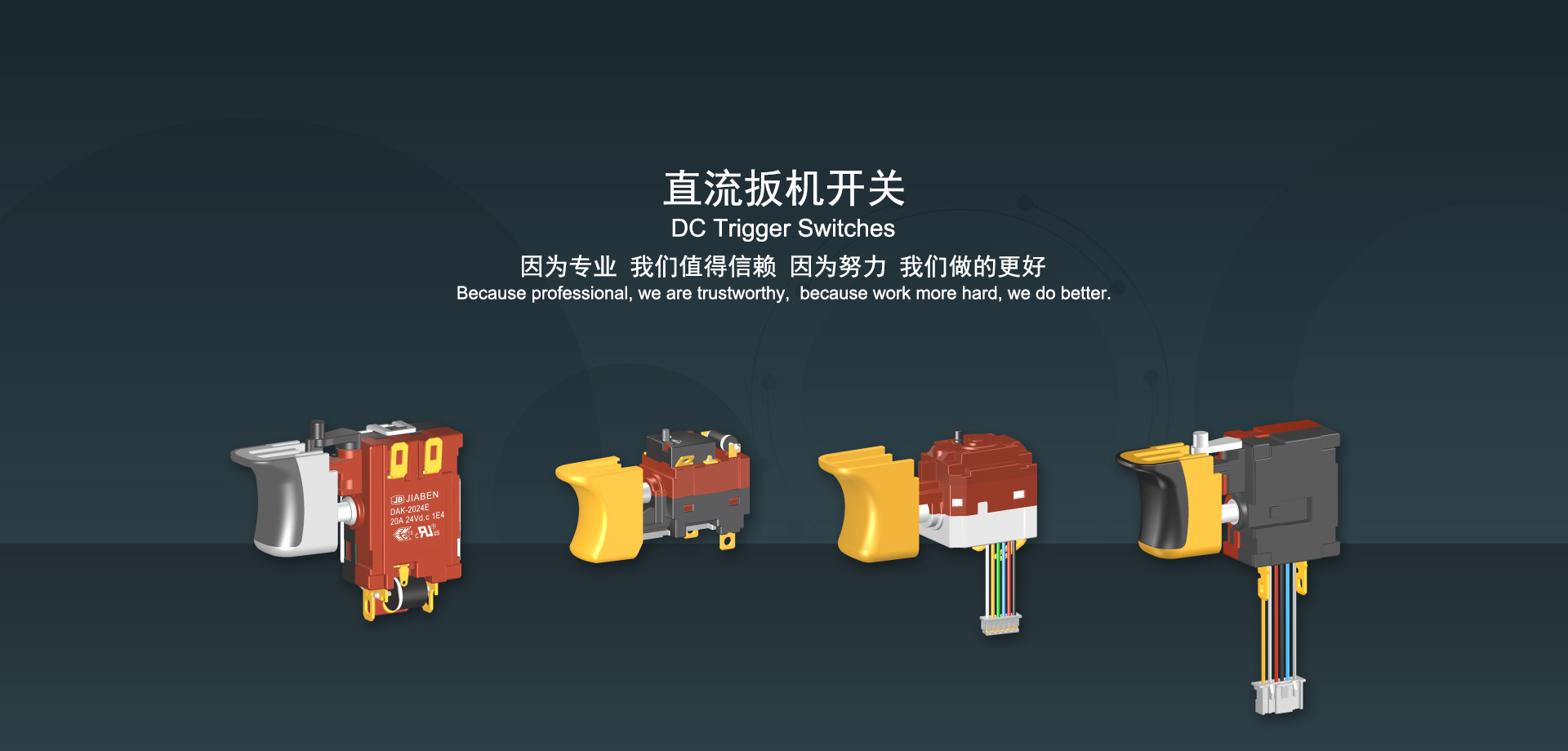 万博客户端官网下载始建于1986年,坐落于浙江省乐清市虹桥镇东电子信息产业园内,现有职工700多人,资产总额超3亿元。公司主要经营“JIABEN”牌微动开关、跷板开关、按钮开关、扳机开关、调速开关和电位器开关等各类交、直流器具开关和各类交、直流线路板模块等产品,主要应用于交、直流电动工具、电动园林工具、清洁器具、家用电器和小型机床等行业,是集产品设计、研发、制造、销售和服务于一体的国家高新技术企业。JIABEN was founded in 1986, located in East Electronic Information Industry Park, Hongqiao Town, Yueqing City, Zhejiang Proviance, existing staff more than 700 peoples, more than 300 million RMB worth of assets. Company is mainly engaged in "JIABEN" brand Micro Switch, Rocker Switch, Push-button Switch, Trigger Switch, Speed Regulating Switch, Potentiometer Switch and other kinds of appliance switch and all kinds of AC or DC circuit board module, such as more than 100 series, 8000 kinds of models of products, mainly used in AC or DC Power-tools, Power Gardening Tools, Cleaning Appliances, Household Appliances and Small Machine Tool and other industries, is the collection product design, research and development, manufacturing, sales and service in one of the national high and new technology enterprise.