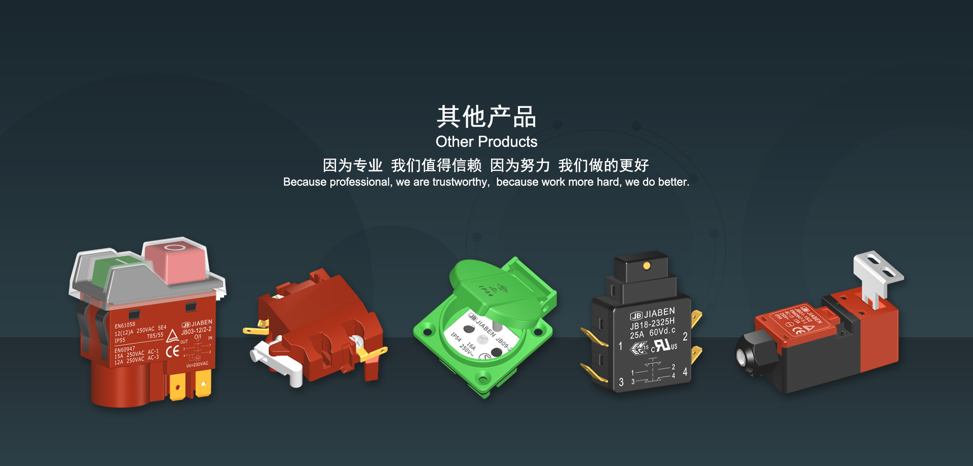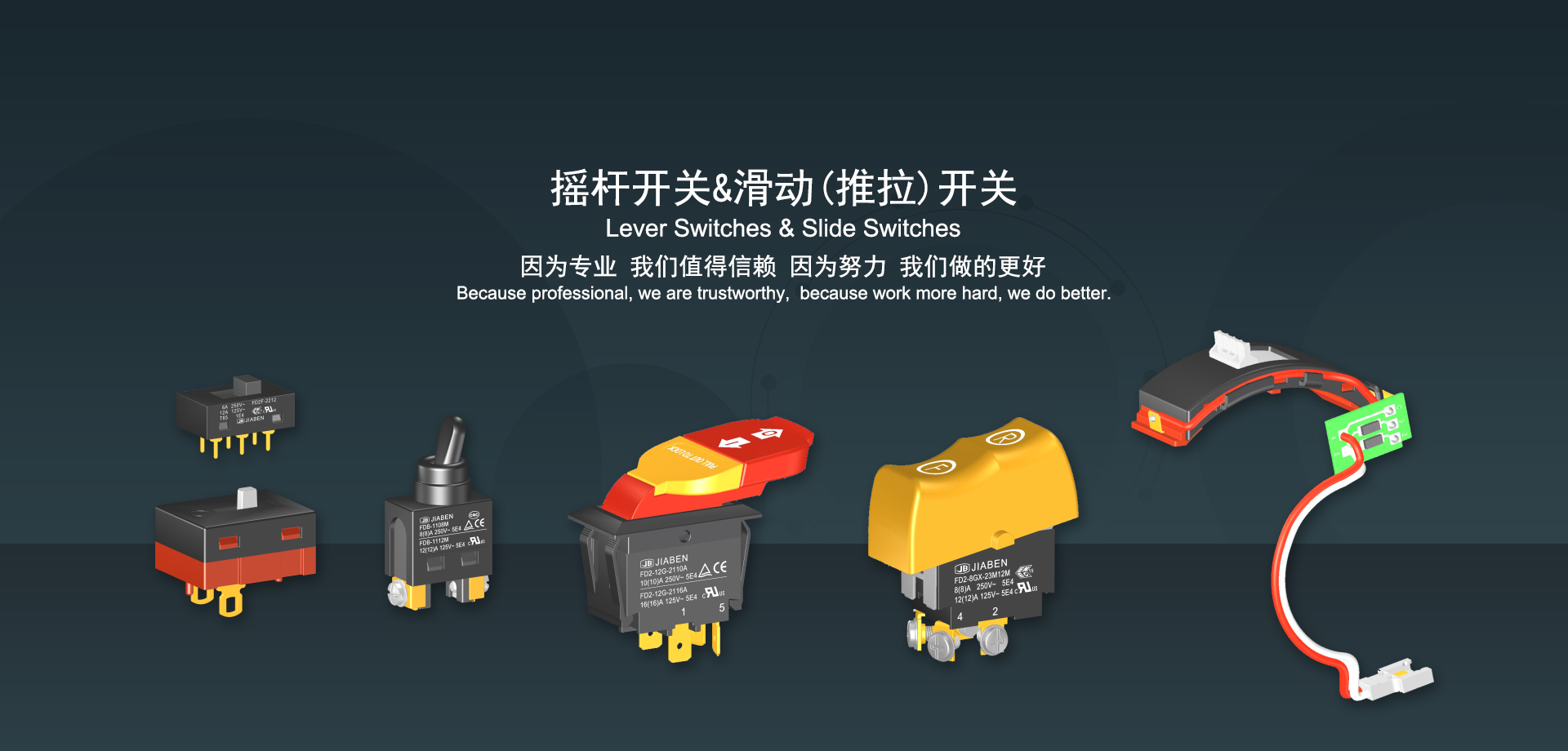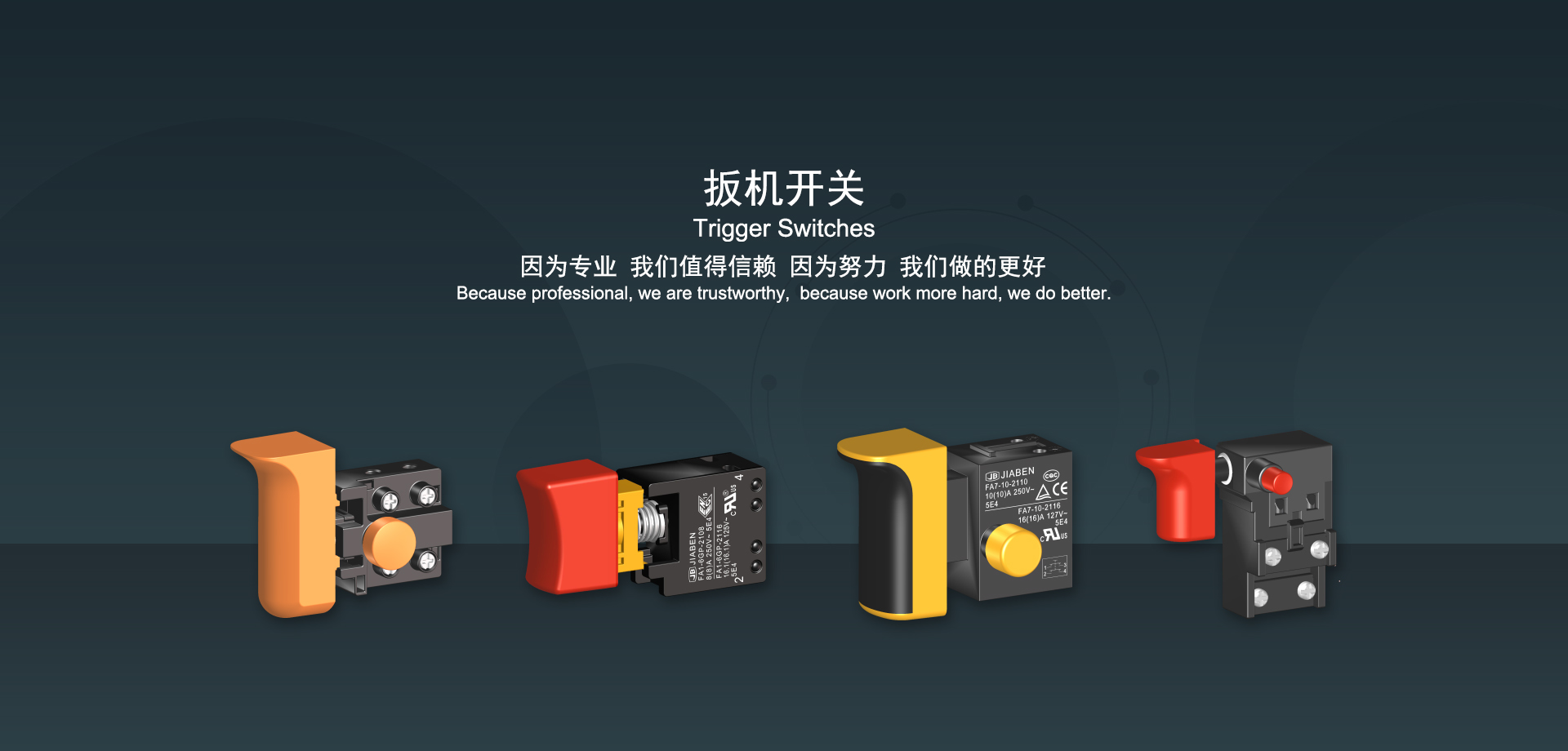 万博客户端官网下载始建于1986年,坐落于浙江省乐清市虹桥镇东电子信息产业园内,现有职工700多人,资产总额超3亿元。公司主要经营“JIABEN”牌微动开关、跷板开关、按钮开关、扳机开关、调速开关和电位器开关等各类交、直流器具开关和各类交、直流线路板模块等产品,主要应用于交、直流电动工具、电动园林工具、清洁器具、家用电器和小型机床等行业,是集产品设计、研发、制造、销售和服务于一体的国家高新技术企业。JIABEN was founded in 1986, located in East Electronic Information Industry Park, Hongqiao Town, Yueqing City, Zhejiang Proviance, existing staff more than 700 peoples, more than 300 million RMB worth of assets. Company is mainly engaged in "JIABEN" brand Micro Switch, Rocker Switch, Push-button Switch, Trigger Switch, Speed Regulating Switch, Potentiometer Switch and other kinds of appliance switch and all kinds of AC or DC circuit board module, such as more than 100 series, 8000 kinds of models of products, mainly used in AC or DC Power-tools, Power Gardening Tools, Cleaning Appliances, Household Appliances and Small Machine Tool and other industries, is the collection product design, research and development, manufacturing, sales and service in one of the national high and new technology enterprise.